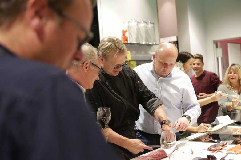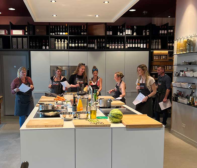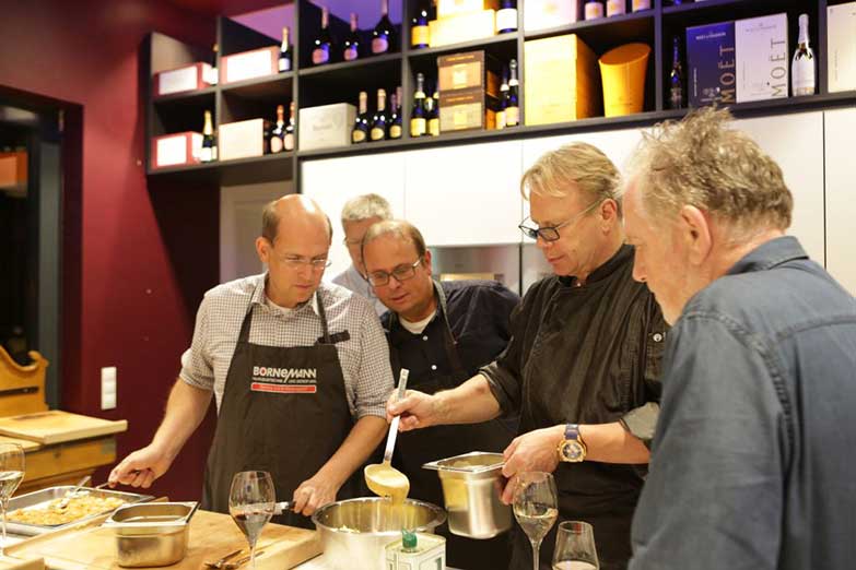 Nach einem lockeren Sektempfang werden Teams für die verschiedenen, von Henk vorgeschlagenen Gänge eines 4-Gänge-Menüs gebildet und dann geht's ran an die Herde. Kochprofi Henk Mulder steht den Teams dabei jederzeit mit Rat und Tat bereit und stellt sicher, dass das Menü für jeden auch ein besonderes Highlight wird. Die einzelnen Gänge werden anschließend gemeinsam an einer großen, schön eingedeckten Tafel serviert.
