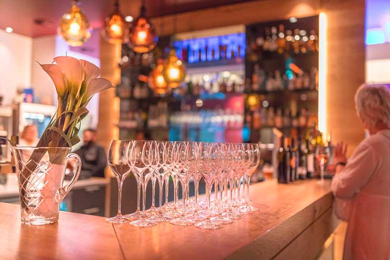 An der Bar kann man sich während der Kochpausen, zwischen den Gängen und auch nach dem Kochevent bei Smalltalk und Musik gemütlich aufhalten, das ein oder andere Glas Wein oder ein frisch gezapftes Grevensteiner Kellerbier genießen.
