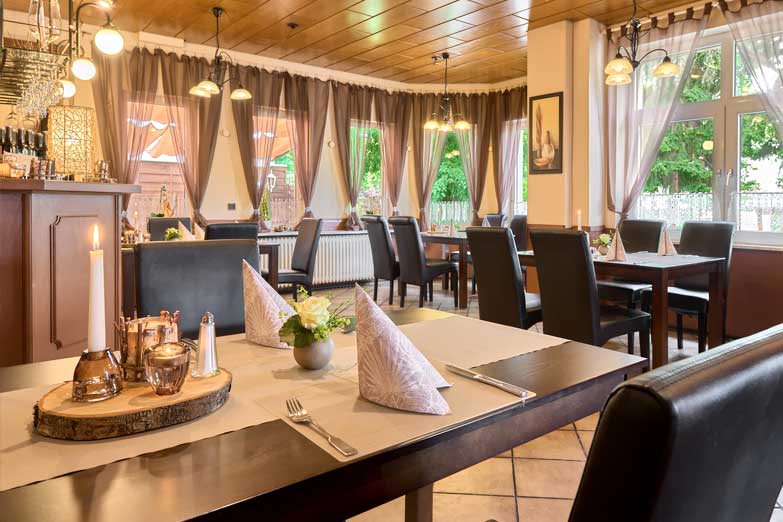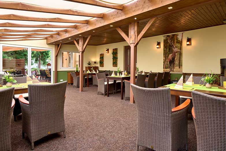 Das Waldhaus liegt, wie der Name schon vermuten lässt, in direkter Nähe zum idyllischen Waldgebiet am Ortseingang von Wolfenbüttel. Seit 2010 leitet die sympathische Chefin Jeanette Müller dieses Traditionshaus. In der Zeit hat sich einiges getan und die Zimmer des Hotels wurden aufwendig renoviert und modern gestaltet. Geblieben ist vor allem die herzliche, familiäre Atmosphäre. Zahlreiche Mitarbeiter stehen schon jahrelang an der Seite der Chefin und kümmern sich liebevoll um das Wohl der Gäste in Hotel und Restaurant. Die einen sind begeistert vom reichhaltigen Frühstücksbuffet und die Nähe zur Natur. Die anderen genießen die gemütliche Atmosphäre und die gutbürgerliche, regionale Küche im Restaurant. Wintergarten oder Kaminzimmer. Es gibt regionale Klassiker von Schnitzelvariationen, Rinderroulade mit Specksauce, Kalbsleber mit Schmorzwiebeln, Apfelspalten in Cidre-Reduktion und Kartoffelschnee, Rumpsteaks, gebratenen Zander mit Gemüsestreifen in Honig-Senf-Sauce bis zu vegetarischen Gerichten. Zur Saison stehen Spargel, Pfifferlinge, Wild, Ente und Gänse im Focus. Bei schönem Wetter kann man auch auf der Terrasse sitzen. Hier finden bis zu 50 Gäste Platz im Grünen.