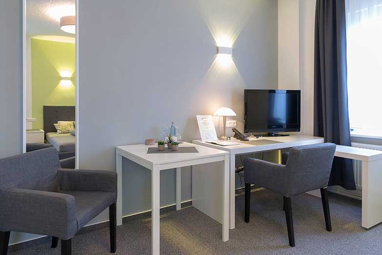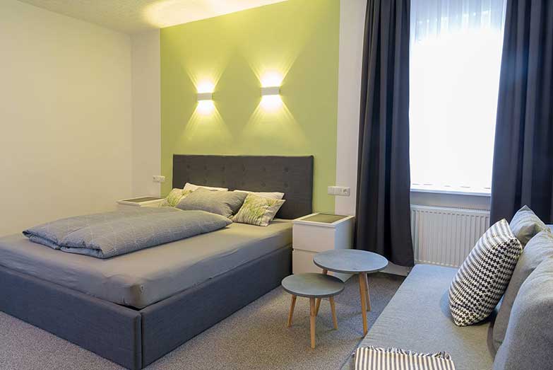Das Hotel verfügt insgesamt über 19 Zimmer auf 2 Etagen: 4 Einzelzimmer und 15 Doppelzimmer, die frisch renoviert, freundlich und modern eingerichtet sind. Zudem besteht die Möglichkeit 5 Doppelzimmer auch als Dreibett-Zimmer und ein weiteres als Vierbettzimmer auszustatten.