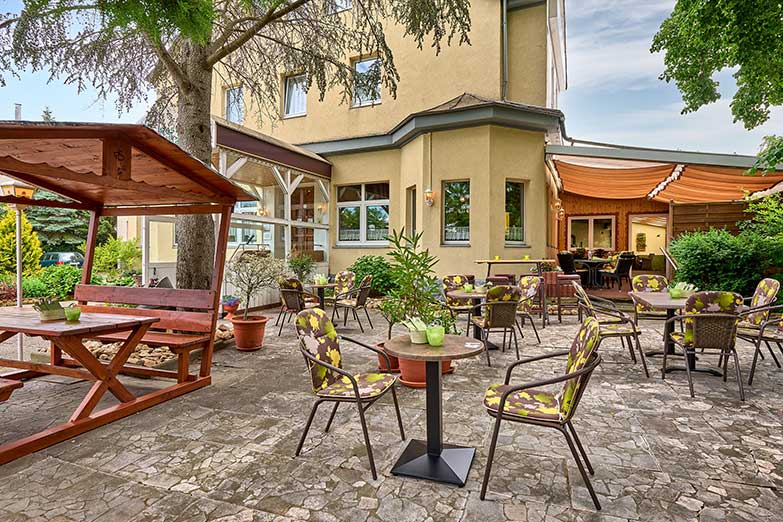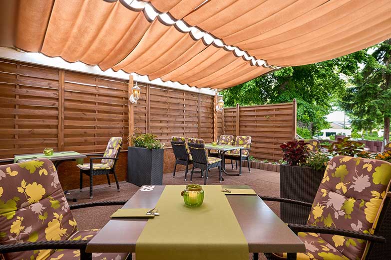 Hotel Waldhaus Biergarten-Terrasse-Details: