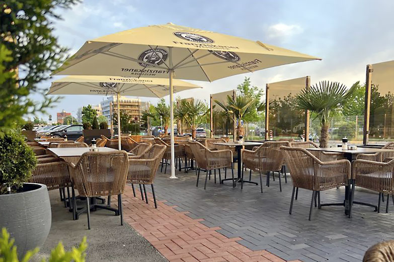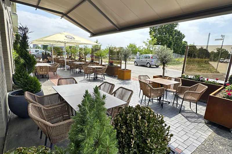 Im Sommer gehts auf die Terrasse mit 50 Plätzen. Kostenlose Parkplätze findet man direkt vor der Tür oder gleich um die Ecke.
