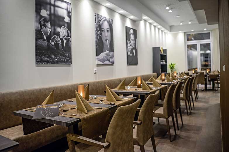 Inhaber Herr Tahiraj, der schon über 15 Jahre das Eiscafé und Pizzeria Roni erfolgreich führt, hat hier ein sehr schönes Domizil für Freunde der italienischen Küche geschaffen. Das edel wirkende Ambiente in braunen Erdtönen mit großem Tresen, Ledermobiliar, schick eingedeckten Tischen, gemütlichen Nischen, Schwarz-Weiß-Foto-Bildern und Fliesenböden in Holzoptik schafft eine warme Atmosphäre, in der man sich gleich wohl fühlt.