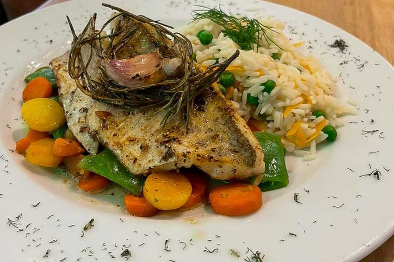Die Küche serviert neben gut portionierten griechischen Klassikern, wie Gyros, Grillplatten, Souflaki, Spezialitäten vom Lamm, knackigen Salaten auch Fisch und Meeresfrüchte, z.B. knusprig gebratene Calamari mit frischem Gemüse und Reis, oder auch Steak vom argentinischem Rind mit einer hausgemachten BBQ Sauce und Rosmarinkartoffeln.