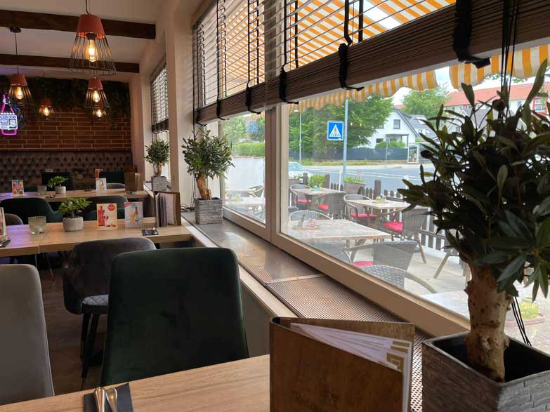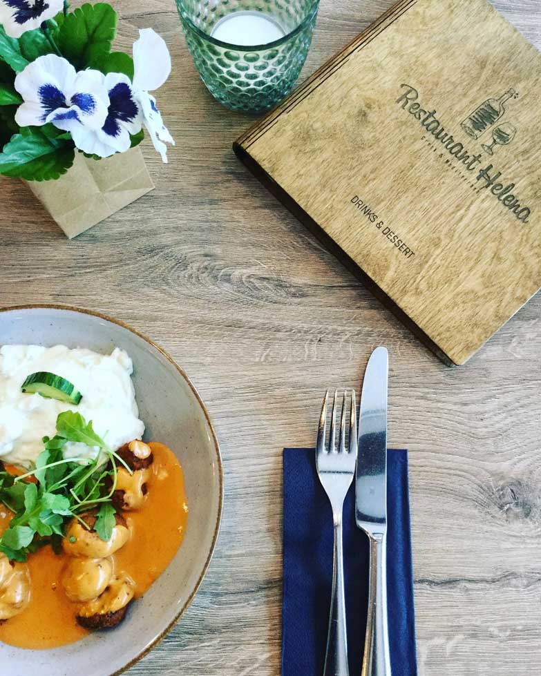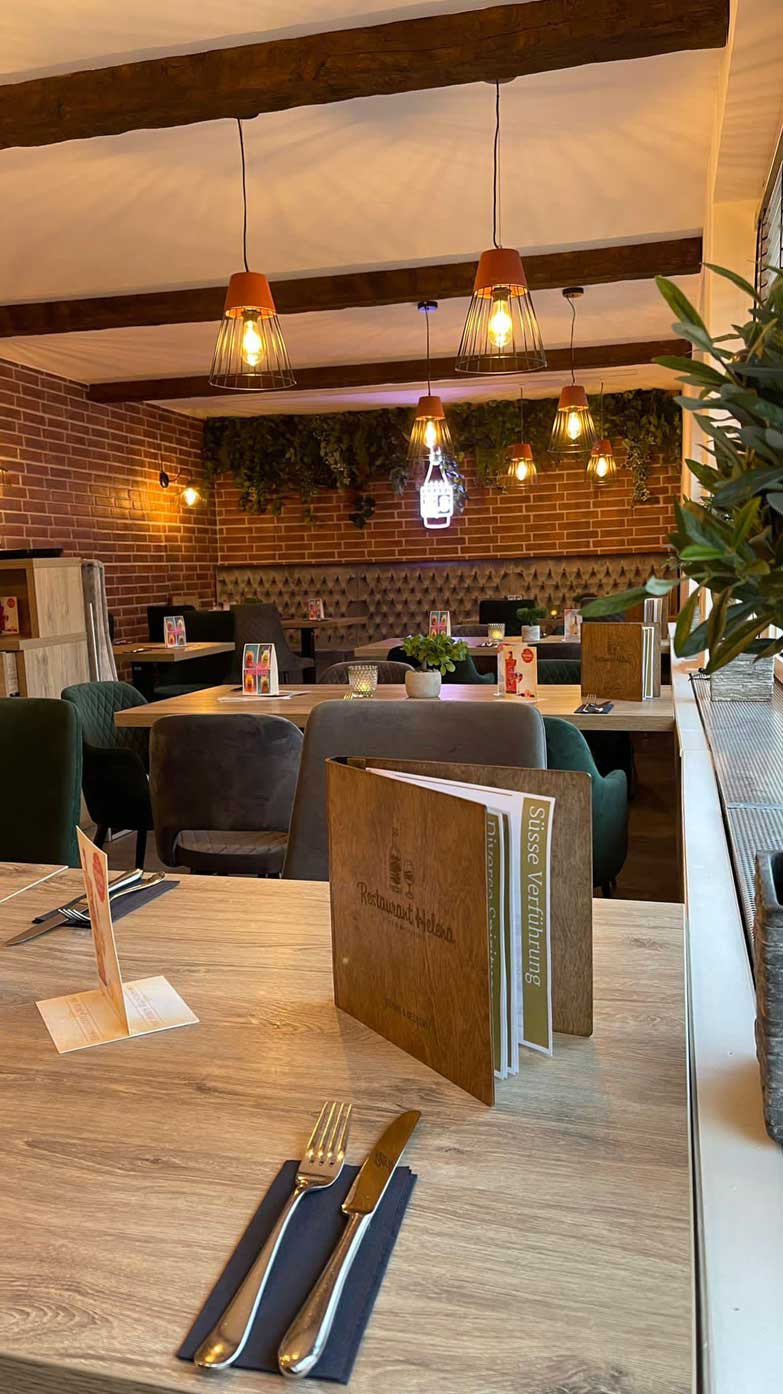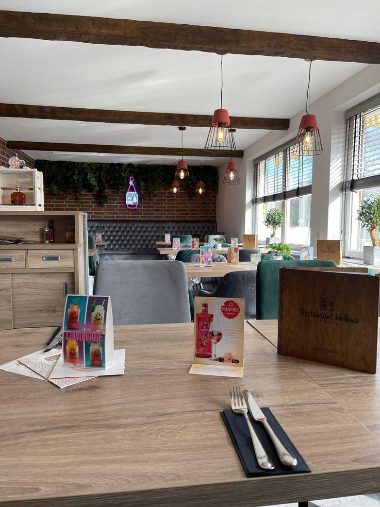 Seit über 15 Jahren begrüßt das Team um Familie Laimodetis ihre Gäste im Helena in Melverode … und es ist kein Ende in Sicht. Das Lokal ist nach der „schönen Helena“ benannt – jene war, laut griechischer Mythologie, die hübscheste Frau auf Erden – und kann sich ebenfalls sehen lassen. Besonders seit dem Facelift Ende 2020. Nach round about 8 Wochen Umbau erstrahlt das Restaurant in noch chicerem Gewand. Weiße Wände, graumelierter Bodenbelag, Sichtmauerwerk, Fototapeten, Retro Lampen, massive Tische und gepolsterte Stühle, einladende Sitzbänke im Chelsea-Stil … sehr stylish und modern designt. Sogar die Teller wurden farblich auf das neue Ambiente abgestimmt.