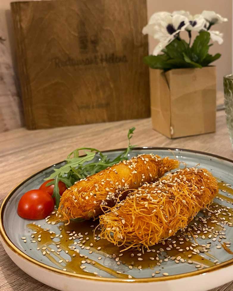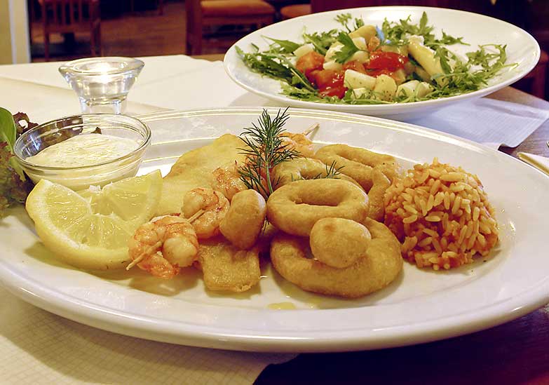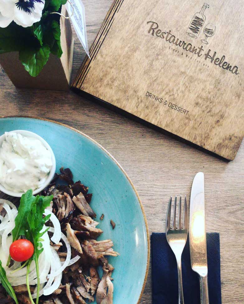 Geblieben sind der freundliche und aufmerksame Service, samt abwechslungsreichem Speiseangebot mit griechischen und mediterranen Variationen zu fairen Preisen. Vorweg empfiehlt sich z. B. die Meze Vorspeisenplatte (ab 2 Pers.), Weinblätter, panierte Champignons, geriebener Feta, Zaziki, Oliven und Peperoni oder der gegrillte Manouri - ein würziger Ziegen-Schafskäse serviert mit Rucola und Balsamico. Als Hauptgang vielleicht der beliebte Helena Teller mit Lammrücken, Schweinefilet und Rinderhüfte, dazu geschmorte Zwiebeln, Metaxasauce, Pommes Frites und Tomatenreis, oder eine gemischte Grillplatte (ab 2 Pers.), bestehend aus Souflaki, Susukakia, Lammkotelett und Gyros, inkl. gemischtem Salat, Zaziki und hausgemachtem Brot. Aus Neptuns Reich die Poseidon Platte … mit gebackenen Calamari, Scampi am Spieß und Schollenfilet. Saisonale Spezialitäten, wie Spargel und Muscheln ergänzen das Angebot. Zudem hält das Helena für kleine Gäste bis 12 Jahre eine gesonderte Speisekarte bereit.