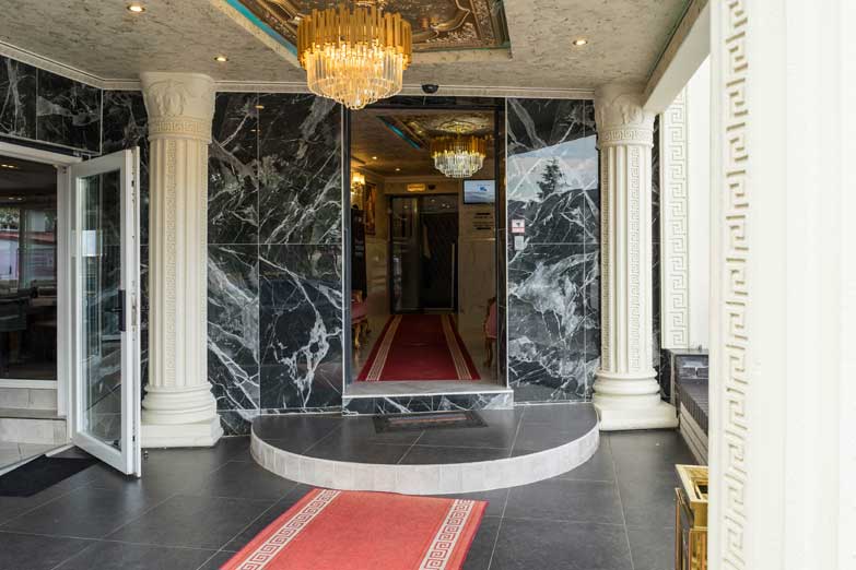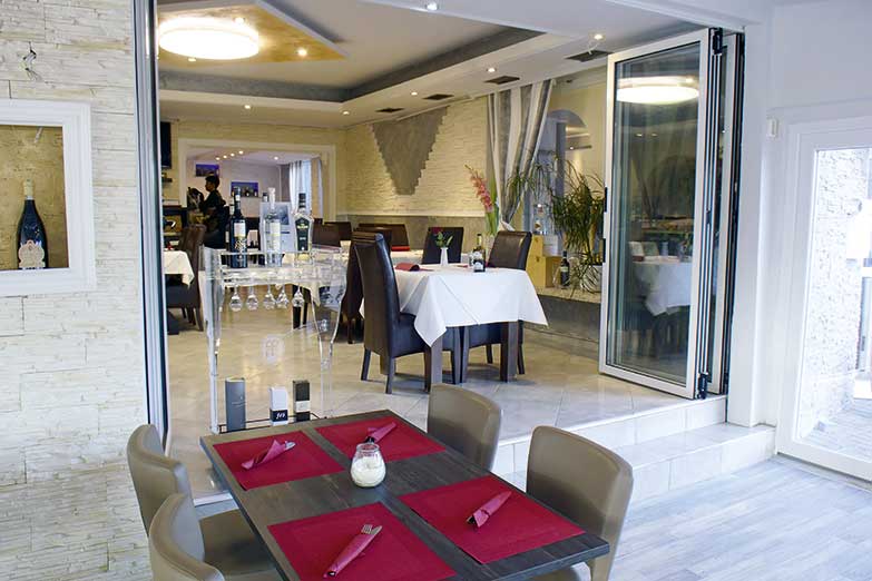 Das Hotel- und Restaurant-Ambiente, angefangen vom Entree, den teilweise sehr modernen Hotelzimmern mit tollen Bädern, den edlen Marmorböden bis zum schönen Wintergarten- und Terrassenbereich ist übrigens sehr elegant und hat Klasse.