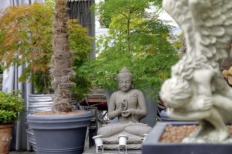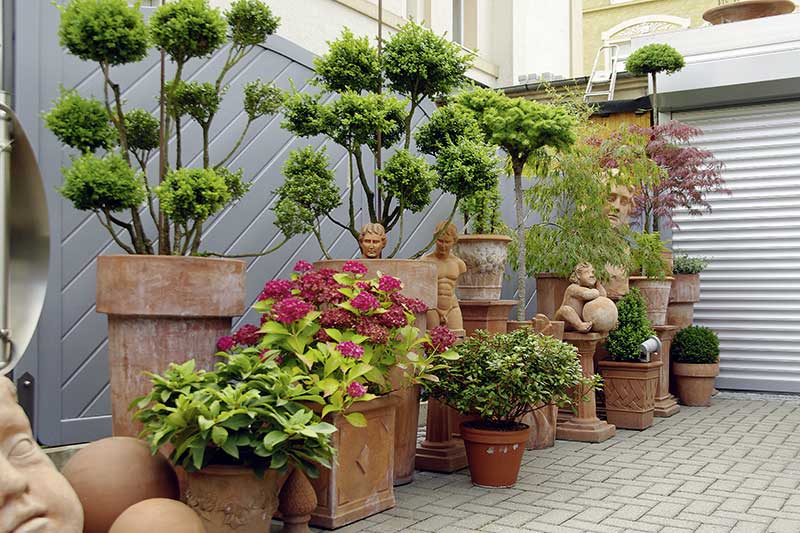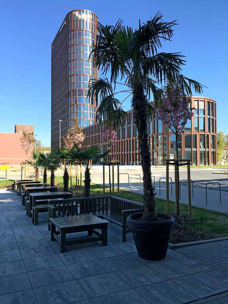 Blumen, Pflanzen, Bäume, Palmen und stilvolle Outdoor-Designs zur Dekoration Ihres geschäftlichen Außenbereichs