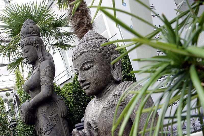 Ob Entrée, Empfangshalle, Empfangstresen, Einkausfpassage, Shopping-Center, Büro, Gastronomie, im Außenbereich oder auf der Terrasse – als Profis für Objektbegrünung verstehen wir es, Blumen und Pflanzen als repräsentativen Blickfang für Ihre Kunden bzw. Gäste einzusetzen. Hierbei reichen unsere Leistungen von der fachkundigen Beratung über die Pflege Ihrer grünen Lieblinge bis hin zum Überwinterungsservice.