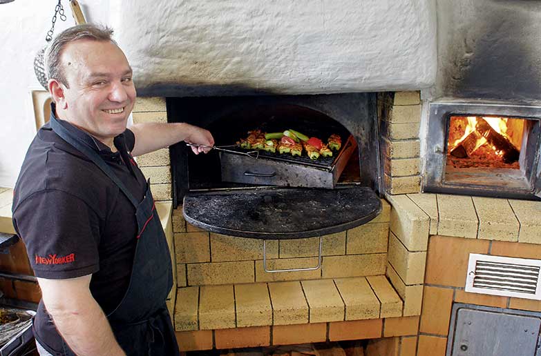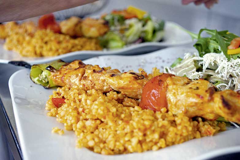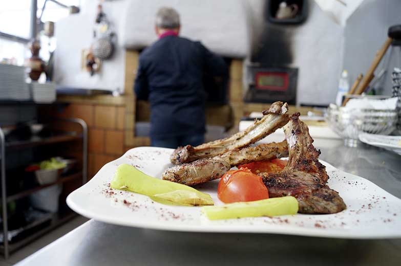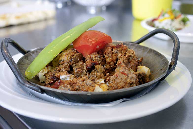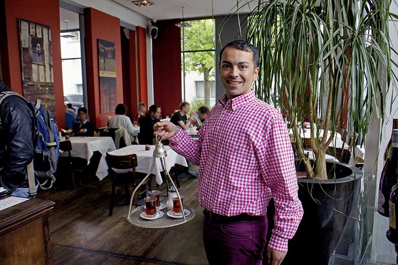 Herzlich begrüßt dich hier Familie Aslan und begleitet euch zu einem (am besten vorher reservierten) Tisch. Aus dem offenen Lehmofen strömt derweil schon ein appetitanregender Duft von orientalischen Gewürzen und gegrilltem Fleisch. Doch vor leckeren Köfte, geschmorten Lammhaxen (ohne Knochen) im Auberginenmantel, Kalbsspießen oder gegrillten Lammfilets an grüner Pfeffersauce gönnt man sich am besten noch eine, immer wieder neu kreierte, Überraschungsvorspeisenplatte. Es geht aber auch ohne Fleisch. immer wieder ein Genuss: das „Kizartma Akdeniz“, in Olivenöl gebratene Paprika, Kartoffeln und Auberginen mit Knoblauch- Joghurtsauce.