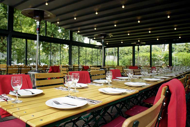 In dem ganzjährig geöffneten, verglasten Garten-Pavillon kann man übrigens auch außerhalb der Sommerzeit Platz nehmen und den Raum zusätzlich für Feiern mit bis zu 80 Gästen buchen.