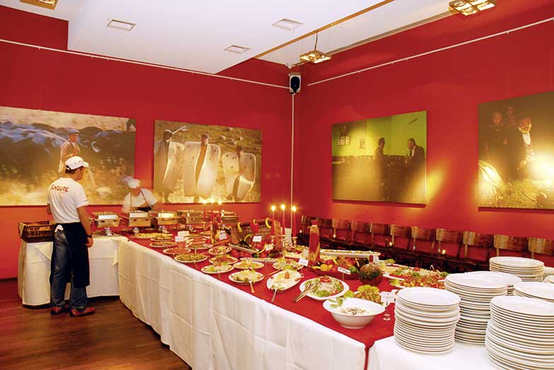 Kapazität: Geschlossene Gesellschaften im Restaurant bis 100 Personen, separater Clubraum bis 50 Personen, Terrasse bis 150 Personen, ganzjährig betriebener Gartenpavillon für bis zu 80 Personen, der, Dank flexibler Glaskonstruktion und Heizstrahlern, in einen festlichen Wintergarten verwandelt werden kann.