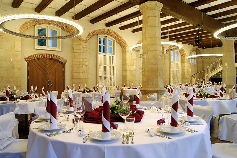 Kapazität: 3 wunderschöne Gewölbekeller für 10, 20, 50 Personen, Bastion bis 70 Personen, traumhafter Rittersaal im Schloss bis 180 Personen