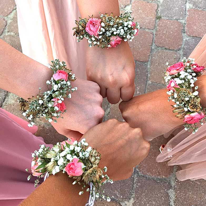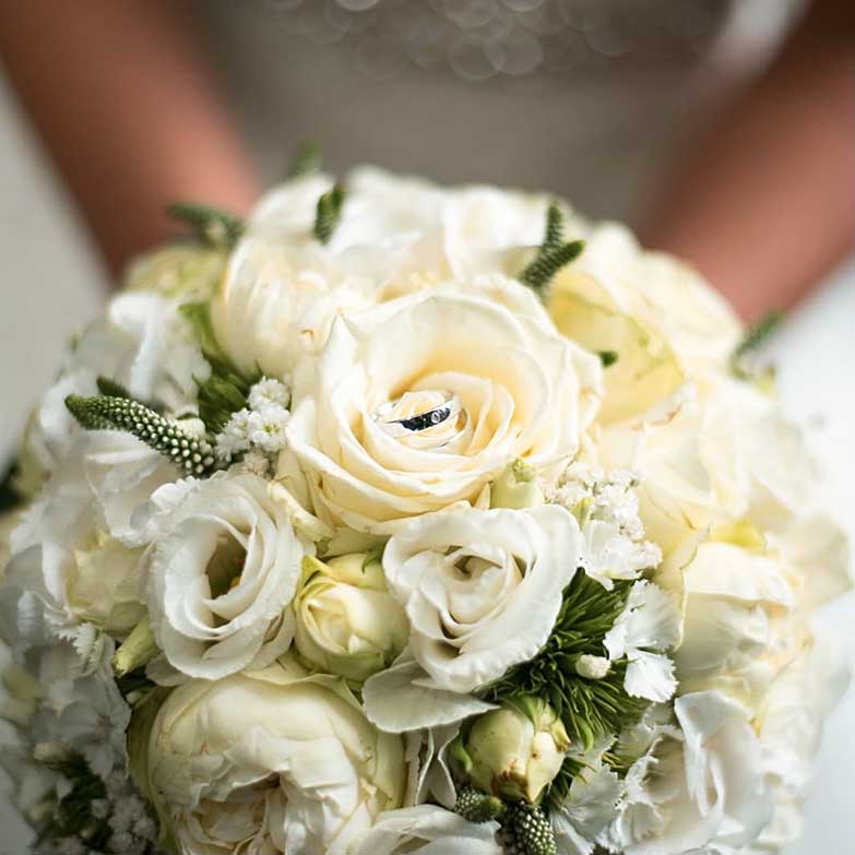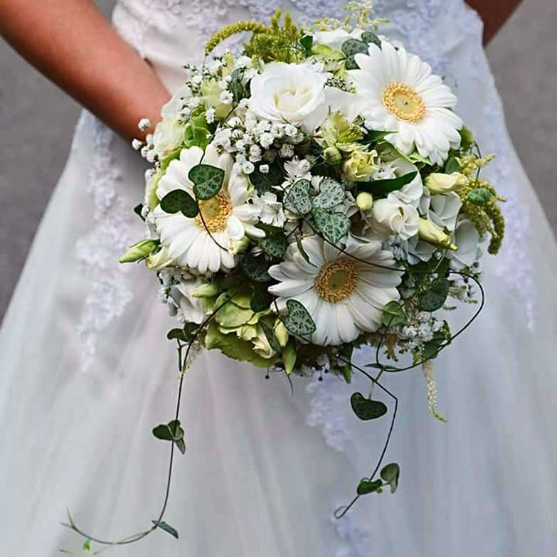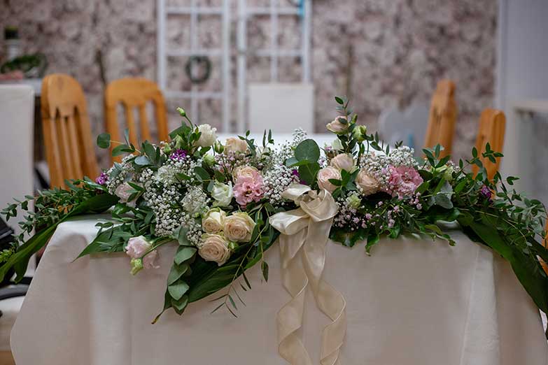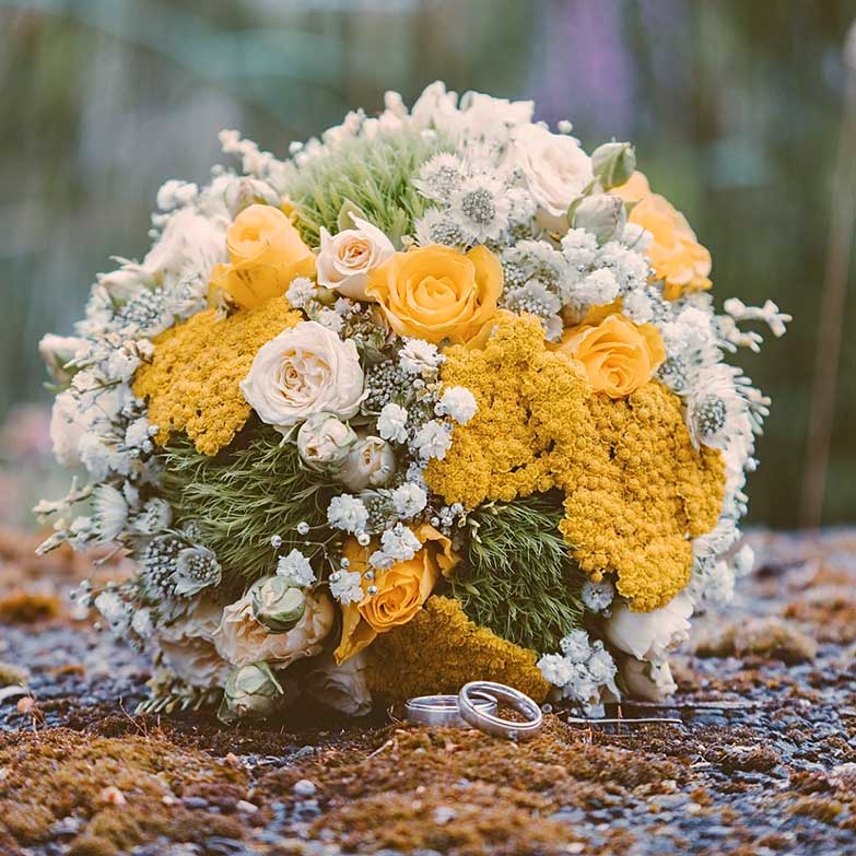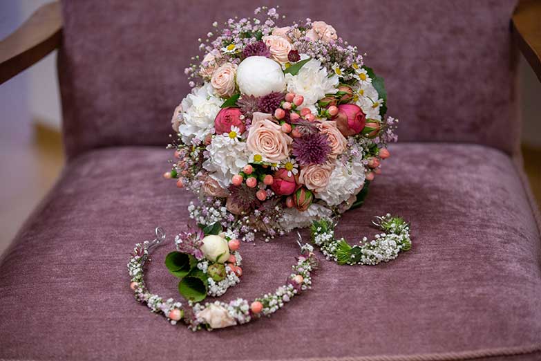 Die Inhaberin Doreen Mildner und ihr Team bietet ein Rundum-sorglos-Hochzeits-Paket an, das auf das Thema der Hochzeit mit dem entsprechenden Farb- und Dekokonzept abgestimmt ist. Dabei werden die Arrangements ganz individuell zusammengestellt: Blumen für den Bräutigam, die Brautjungfern, Trauzeugen, Autoschmuck, Hochzeitsstrauß, Tisch- und Locationdekoration und vieles mehr. Lassen Sie sich gerne frühzeitig beraten, damit dem entspannten "Ja-Wort" nichts mehr im Wege steht.