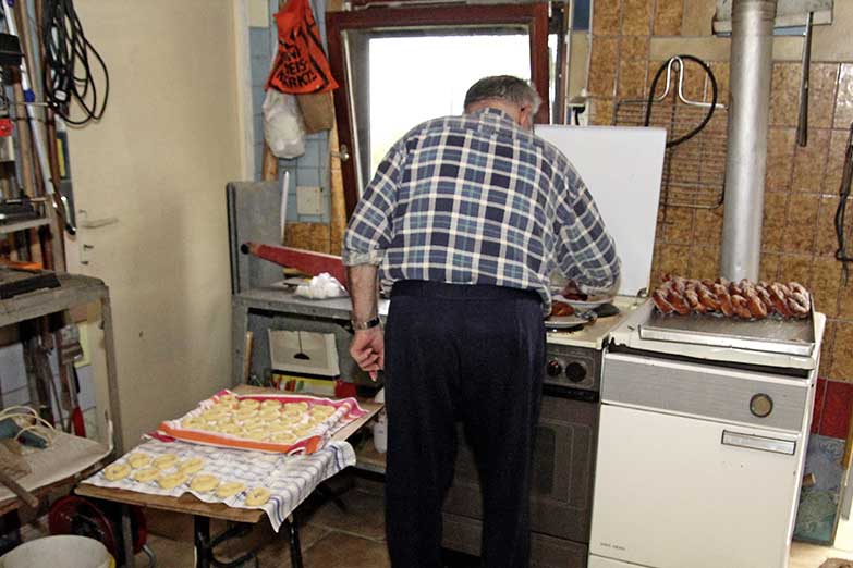 Jedenfalls macht Oma immer die Tür zu, wenn Opa irgendwas ausbackt. Damit der Geruch nicht ins Haus zieht. Duft nennt Opa den Geruch. Der Duft des alten Backhauses zieht dann für kurze Zeit wieder durch den Schuppen, Zimt, Vanillezucker, Hefe, je nachdem, und Opa steht plötzlich in seiner alten Backstube 1950. Das riech ich gern, sagt er, und lässt elegant den letzten Prilleken in das heiße, aber nicht zu heiße Fett gleiten.