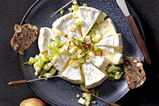 Apfel-Chili-Salsa auf Camembert-Torte