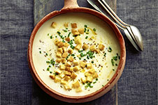Brunnenkresse-Suppe mit Ziegenkäse-Topping