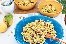 Gnocchetti Sardi mit Salami und Pistazien-Zitronen-Pesto