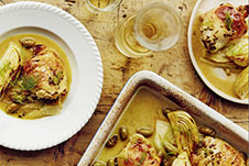 Gebackenes Hähnchen mit Zitrusfrüchten, Fenchel und Weißwein