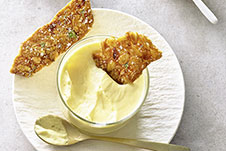 Pinienkern-Thymian-Krokant auf weißer Mousse au Chocolat