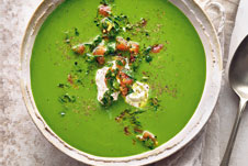 Spinatsuppe mit Mozzarella und Tomaten-Gremolata